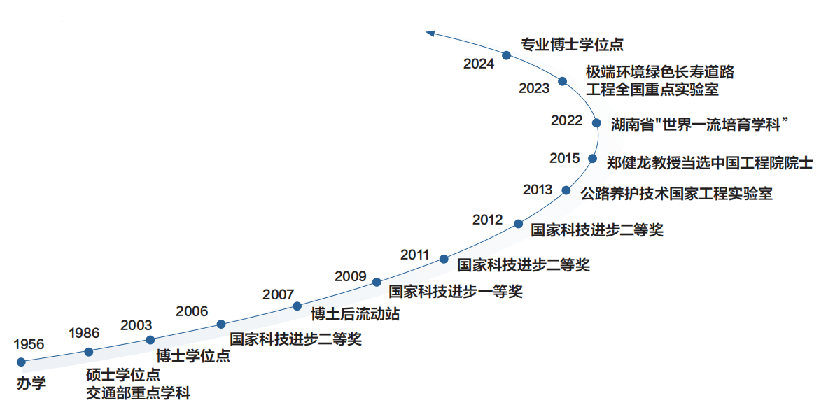 开云官网交通运输工程学科始于1956年,是我国最早培养公路交通专业人才的学科之一。历经近70年的发展,已建立本-硕-博贯通人才培养体系,2022年入选湖南省“世界一流培育学科”2024年入选湖南省优先支持和重点保障学科。