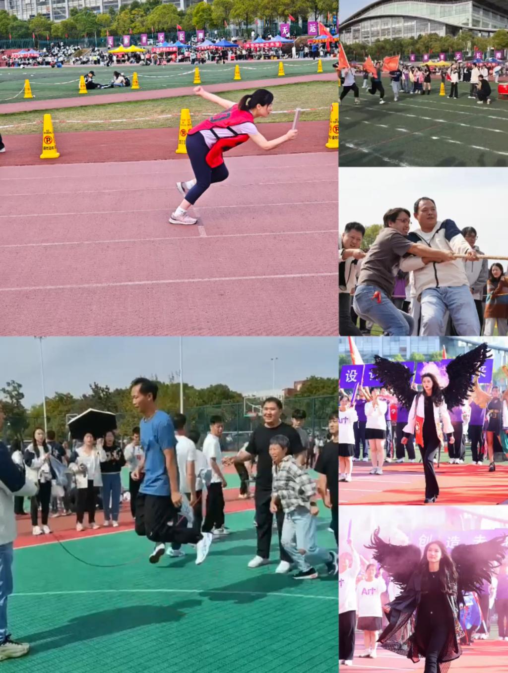 运动会旨在提升师生身体素质以及磨炼拼搏精神,赛场上,各项比赛紧张而激烈地进行着。径赛跑道上,艺术学子如离弦之箭,向着终点飞奔而去,他们的速度与激情点燃了全场,每一次努力,每一次拼搏都是对自我的超越。跳高、跳远、铅球、飞盘的比赛中运动员们划出优美的弧线,他们每一次的跳跃与投掷都是力量与技巧的展现。团队项目的50m迎面接力、8*100m师生接力、师生拔河比赛、跳长绳比赛这些集体项目中生动再现了优良的团队协作精神,经过激烈的角逐,设计艺术学院斩获了跳长绳集体项目全校第一,50m迎面接力全校第三的好成绩。