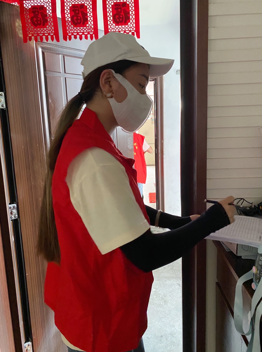 在疫情防控服务过程中,周星宇同学主要是在姜堰区马厂、锦姜社区和三水街道进行志愿服务,她主要负责协助社区进行居民信息采集以及上门服务,帮助家庭老人注册激活“国家医疗保险电子凭证”等。谈起这个暑假报名参加社区志愿服务活动以及回想起整个过程中的点点滴滴,周同学感触颇深,她说:“作为一名当代大学生,我通过志愿服务为疫情防控贡献了自己一份微薄之力,其实没想那么多,想为家乡疫情防控尽点心,自己便冲上去了。这次疫情复发江苏省这边是比较严重的,南京市和扬州市最为严重,而泰州是离这两个市最近的,如果泰州也出问题,蔓延就更不可控。我喜欢参加各种各样的志愿者活动,想尽自己的一份力为社会多做一些贡献。疫情没有那么慈眉善目,社区工作也充满着起伏与坎坷,但这些都是征战疫情必须要经历的,当我们打赢这场‘战争’时,之前经历过的所有委屈、焦虑和恐慌在人们的笑容与欢乐中消失无踪,我爱我的家乡,我爱我的祖国,面对美好,人人有梦。”