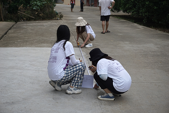 下午,邓寒松老师与省直乡村振兴工作队负责人对数十家当地农户庭院开展实地调查。实践团成员不畏高温酷暑,对当地庭院进行全方位的测绘,并提出初步设想。团队在调查与测量完成后,立即对调研庭院进行SU的绘制,并与带队老师邓寒松进行方案探讨,确立乡村人居环境改善初步方案。