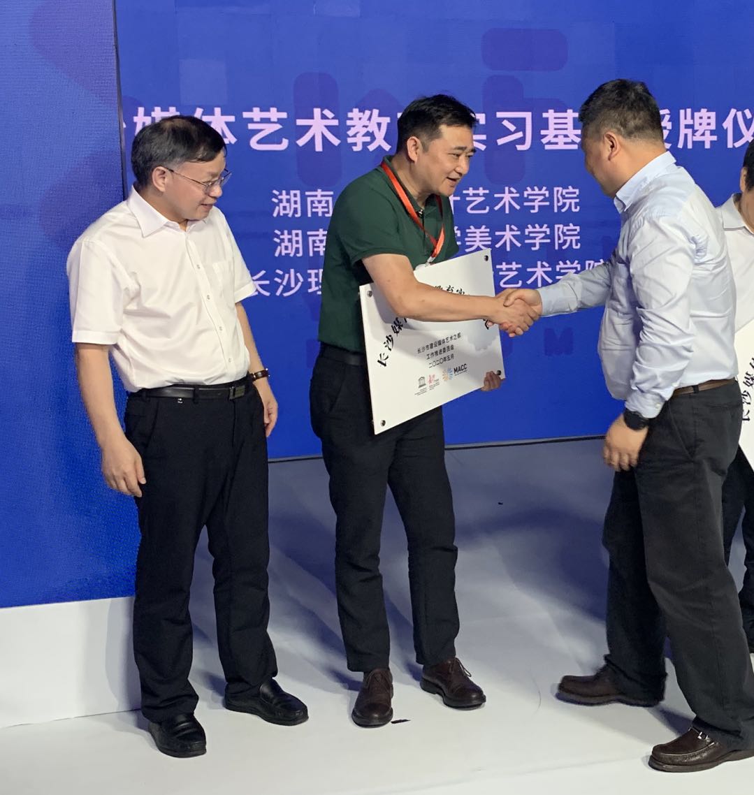 2020年5月20日,由中共长沙市委宣传部主办,市媒体艺术发展中心承办的“长沙媒体艺术教育实习基地”授牌仪式暨“C+C全球青年创新伙伴关系计划”路演在百年工业文化遗存地裕湘纱厂举行。长沙市委宣传部领导、相关政府部门代表、高校代表,企业代表,部分青年代表等参加活动。王健院长代表开云kaiyun体育设计艺术学院参加了授牌仪式。