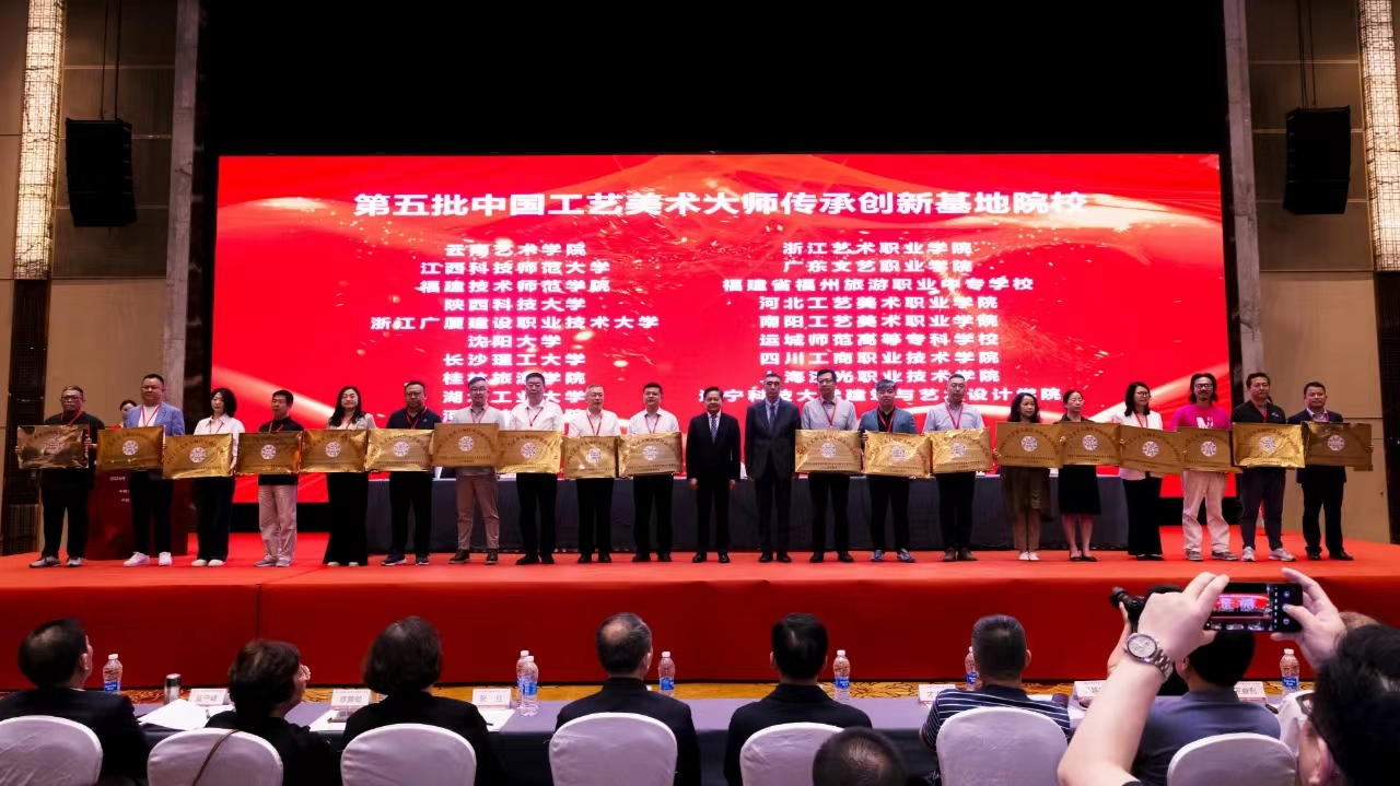 5月9日,由中国轻工业联合会主办的2024年中国工艺美术博览会开幕式在福州举行,同期召开2024年中国工艺美术大师工作会议。会上,中国轻工业联合会对开云kaiyun体育等十九所获批“中国工艺美术大师传承创新基地院校”的高校举行了授牌仪式,开云官网设计艺术学院公共艺术系主任王清老师代表学校参加授牌仪式。