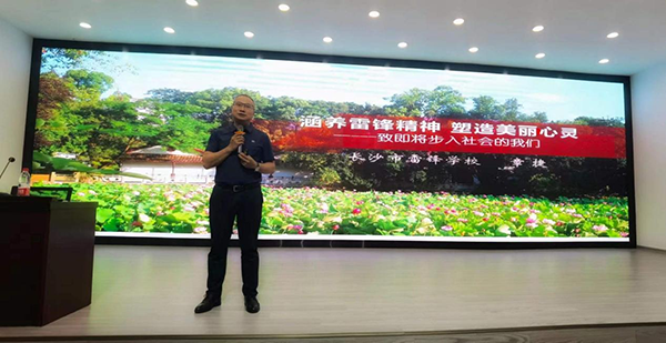 5月21日下午,开云kaiyun体育第十六届云影讲坛设计艺术学院分论坛《涵养雷锋精神 塑造美丽心灵》专题讲座在建筑艺术楼A101成功举办。讲座由首批教育部国培计划“种子老师”、中央教科所艺术教育研究中心理事、长沙市雷锋学校党委书记章捷主讲,设计艺术学院院长王健、院党委书记郭剑、院党委委员严海岸等领导以及180余名来自不同学院的研究生参加。