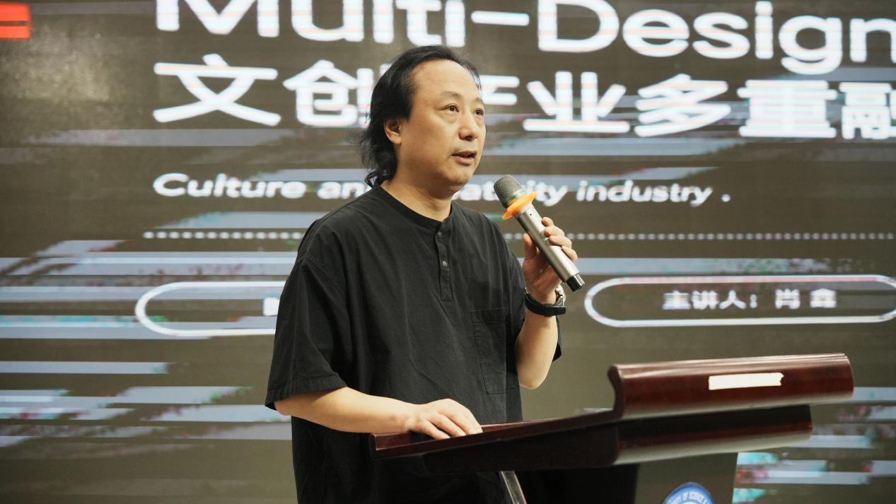 6月18日下午,开云kaiyun体育第十六届云影讲坛设计艺术学院分论坛《文创产业多重融合的设计态度》专题讲座在建筑艺术楼A101成功举办。讲座由湖南省人民政府参事室特约研究员,湖南省设计艺术家协会文创设计委员会主任,湖南湘江新区文化创意和旅游产业协会会长,中南大学、开云kaiyun体育设计艺术学院校外研究生导师肖鑫主讲,设计艺术学院党委委员严海岸、研究生辅导员李慧以及130余名研究生参加。