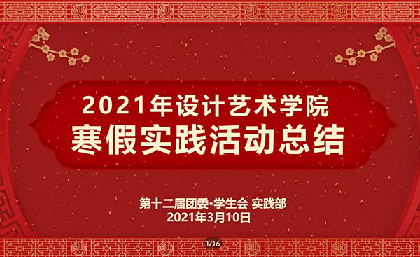 3月10日晚,设计艺术学院于腾讯会议顺利开展2021年寒假实践活动总结。专业老师邓寒松、莫武刚;院团委书记李慧;2020级辅导员赵泽铭,设计艺术学院第十二届团委·学生会主席团、各部门部长副部共计51人参加此次会议。本次评选会由实践部组织开展,实践部史心雨主持。