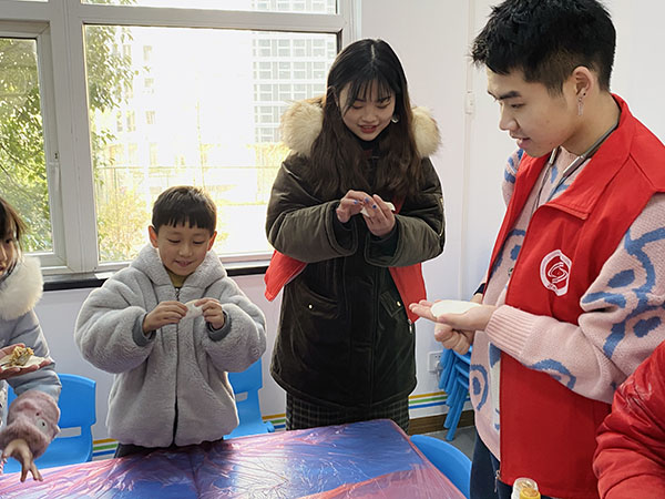 12月20日下午,在冬至来临之际设计艺术学院精心策划开展以“包住喜和乐,绘出合家欢”为主题的社区志愿服务活动并于雨滴儿成长乐园中心成功开展,此次活动由实践部组织开展,工美1905班周嘉慧、1908班高驰、数媒1908班牛璐瑶等十余名志愿者参加