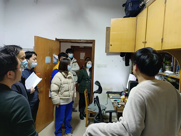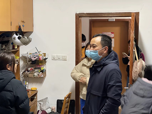 期末将至,气温骤降,老师提醒学生们要养成良好的作息习惯,合理安排学习时间,适时增添衣物。过程中,老师们围绕防疫、学习、生活等方面深入了解学生们的实际诉求,与学生近距离交流,叮嘱学生们注意疫情期间的寝室清洁,加强身体锻炼,引导大家树立疫情防控大局观。李伟亲切询问了学生们的考研、就业等计划,督促学生们做好自身规划,珍惜时光,并强调寝室成员要友爱互助,树立寝室优风,以积极进取的态度面对学习和生活。寝室里洋溢着师生温情,言语间传递着关心与温暖。