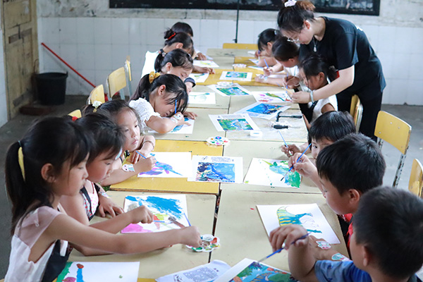 此次暑期实践共有周边五个村,百余名孩子参与进来,取得了显著成果。“开云kaiyun体育研究生暑期专业实践团带来的地质美育研学活动让我们这些偏远地区的儿童触摸到外面的世界,学习到未及的地质知识。吉卫镇交通不便,师资力量严重短缺,他们愿意克服交通、语言、生活各方面的困难,每天早出晚归为孩子们上课,我们非常感动和感谢。”当地村官龙金英表示。设计艺术学院研究生学子发挥专业优势,创新交互体验式的新型美育模式,为孩子们带来了一节别开生面的课堂,用艺术感染儿童,有效促进乡村儿童拥有更全面的个性发展与完善的审美意识观,用实践和才干为乡村文化振兴贡献他们的青春力量!
