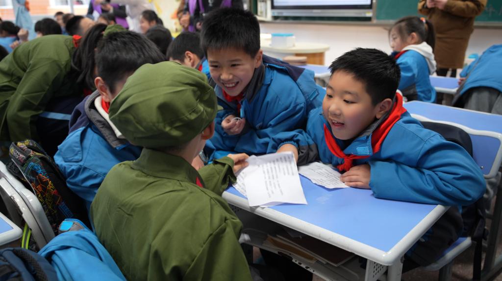 “谢谢你,这道题我弄懂了”,四年级的王沐宸抽中名为“教室里的悄悄话”的任务卡,在听到同学向他表达感谢后,尽管是情景演绎,但他依然露出了开心的笑容。该班班主任车子川表示:“本次活动让孩子们明白,即使做的事情很微小,只要心怀善意,就能传递温暖,践行雷锋精神可以在学习生活中的点滴行动中体现,十分有意义”。