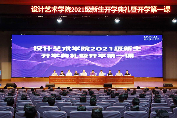 9月12日晚19:30,设计艺术学院于金盆岭校区五教大礼堂开展2021级新生开学典礼暨开学典礼。学院党委书记李伟、院长王健、院党委副书记万馨;副院长刘卫东、张剑、李娟娟、王龙、蔡花菲;院党政办公室任龙海;院党委委员严海岸;数字媒体艺术系主任朱诗源、工艺美术系主任王清、环境艺术设计系肖志高、艺术学理论部主任李正庚;全体辅导员、新生班主任以及480余名2021级本科、研究生新生参加开学典礼。会议由学院党委副书记万馨主持。