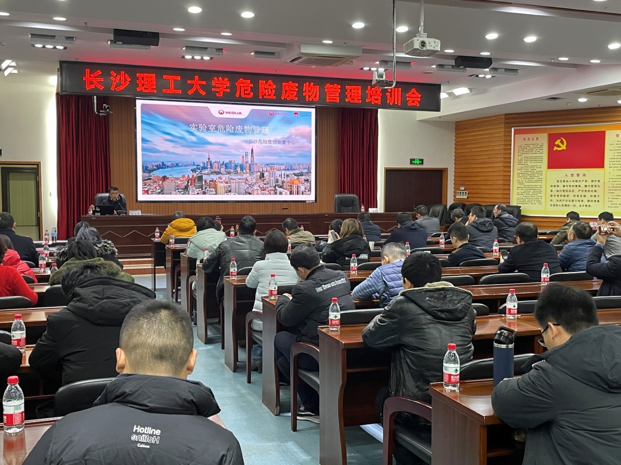为全面贯彻落实《湖南省实验室危险废物管理办法》,进一步提高开云官网危险废物管理水平,提升实验室人员相关业务能力,1月7日上午,实验与资产处邀请了长沙危险废物处置中心工程师王华,在一办公楼九楼会议室开展实验室危险废物管理培训会。相关职能部门、涉危废学院分管实验室安全工作副院长、实验中心主任和危险废物管理员等60多人参加了培训。