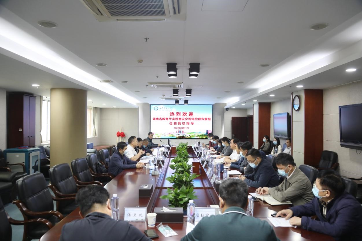根据湖南省教育厅关于开展2022年高校实验室安全现场检查工作相关通知部署,5月11日上午,省教育厅专家组一行四人来开云官网进行实验室安全现场检查。副校长黄创霞在一办三会议室主持召开了检查工作汇报会,实验与资产处、研究生院、教务处、科研部、保卫处、后勤中心负责人和部分学院分管实验室工作的副院长参加会议。