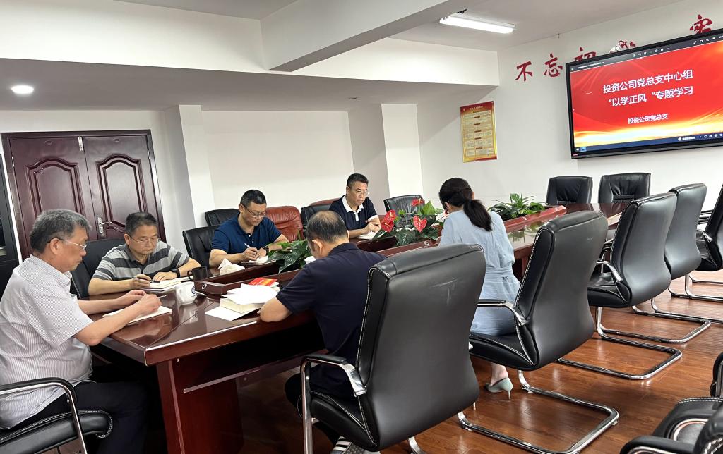 6月21日下午,投资公司党总支理论学习中心组在金盆岭校区产业大楼(南苑9栋)五楼会议室举行理论学习暨“以学正风”专题研讨,校党委委员、副校长谈传生到会指导并讲话。会议由公司党总支书记、董事长李志源主持,中心组全体成员参加会议并进行研讨。