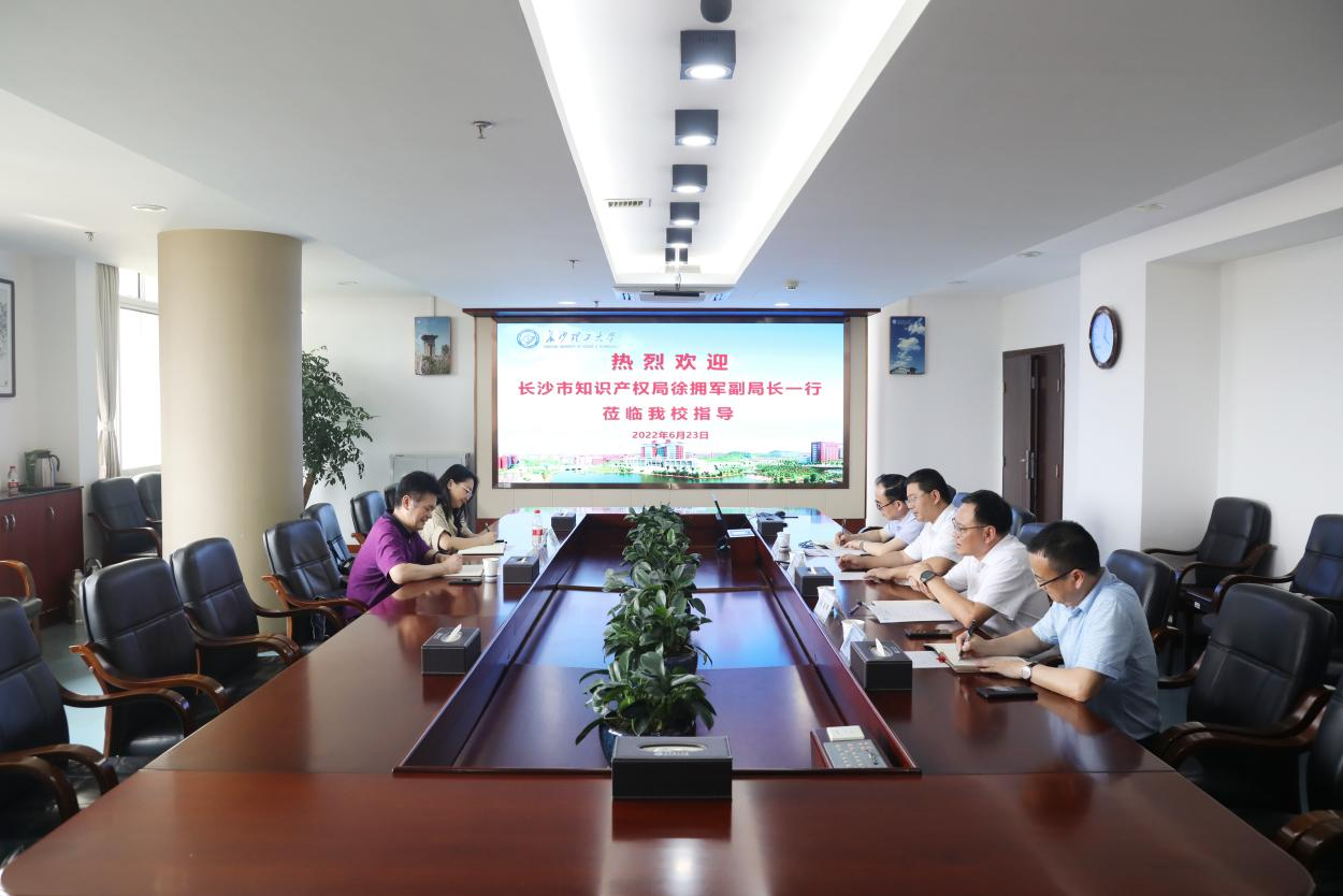 曹一家对徐拥军一行来校指导表示热烈欢迎,感谢长沙市知识产权局长期以来对学校的关心和支持。他表示,学校继续做好知识产权管理,积极推动知识产权在长转化,为全面落实“三高四新”战略定位和使命任务贡献长理力量。