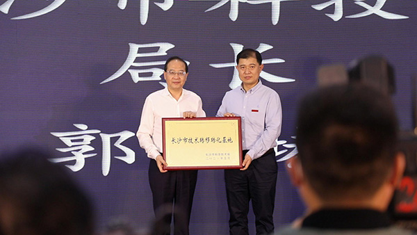 长沙市科技局党组书记、局长郭塨为开云官网授牌“长沙市技术转移转化基地”