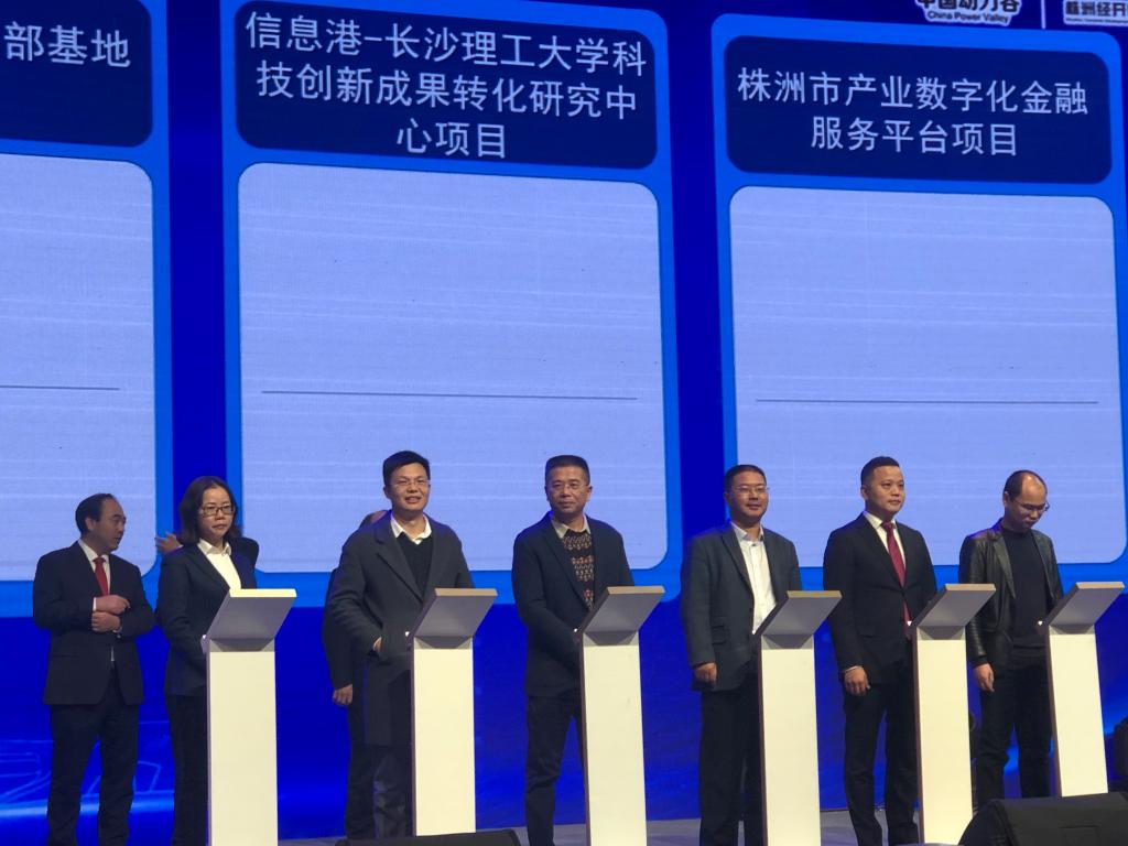 12月14日下午,开云官网与株洲信息港签约成立科技创新成果转化研究中心仪式在株洲希尔顿酒店举行,校长曹一家、计算机与通讯工程学院王进等,株洲市委书记毛腾飞,市委副书记、市长阳卫国和乐田集团陈乐田董事长等企业代表出席签约仪式。