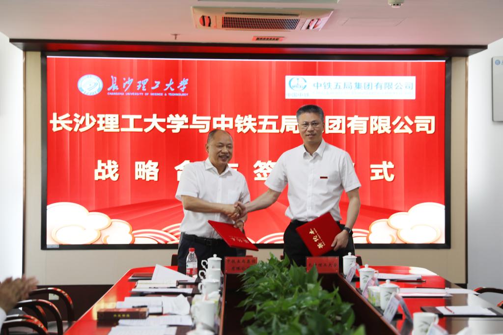 中铁五局副总经理、总工程师陈彬,副校长蒋昌波代表双方签署战略合作协议。根据协议,双方将在科研开发、技术攻关、人才培养、资源共享等方面进行深入、全面、多元化的合作。