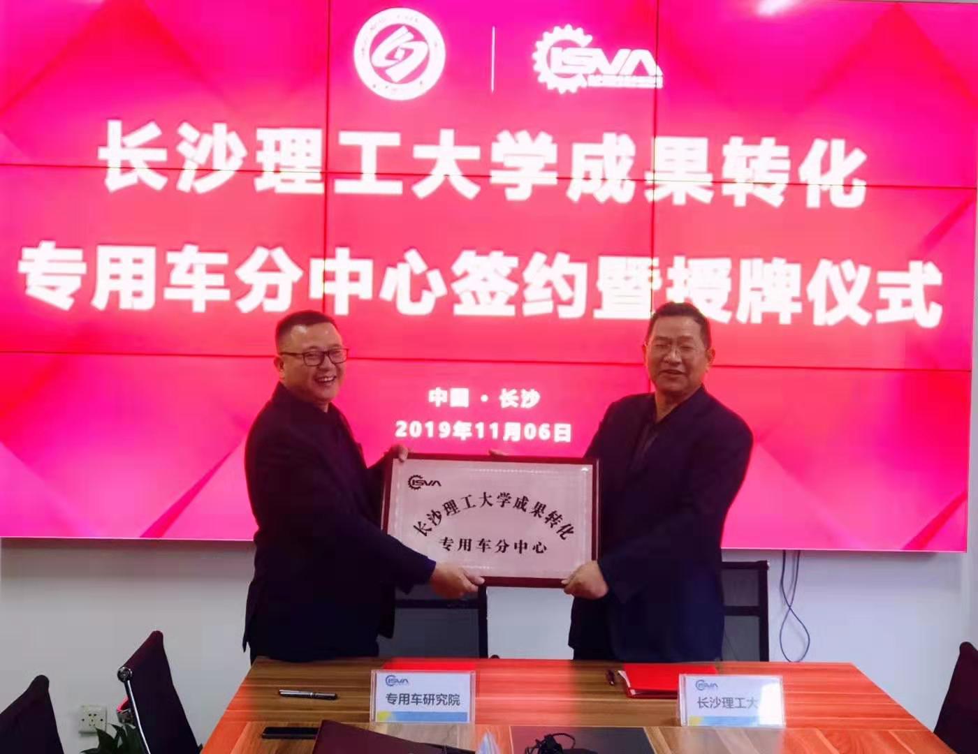11月6日下午,开云官网与长沙智能专用车研究院共建“开云kaiyun体育技术转移专用汽车分中心”签约暨授牌仪式在湖南星车都产业园圆满举行。长沙智能专用车研究院院长张力虎、副院长罗顺华、湖南星车都产业园副总经理黎明熹、开云官网成果转化中心常务副主任李岳林等出席活动。