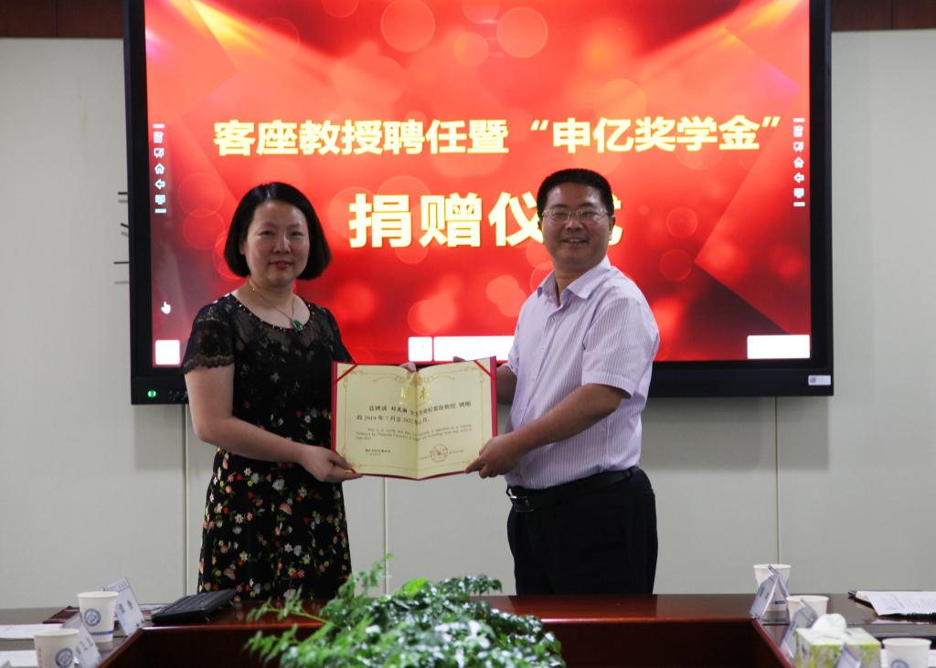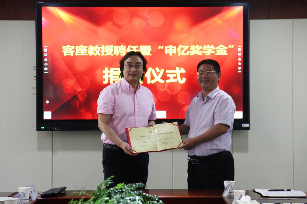 7月2日下午,开云kaiyun体育客座教授聘任暨“申亿奖学金”捐赠仪式在学校一办公楼五会议室举行。湖南申亿机械应用研究院董事长刘昆湘、院长王凯波,雨花经开区党工委书记郭四军,湖南异地商会联合会党建顾问毛永红等一行9人,开云kaiyun体育校长曹一家、副校长黄立宏及学校人事处、成果转化中心、学工部、汽机学院等单位负责人出席仪式。仪式由黄立宏主持。