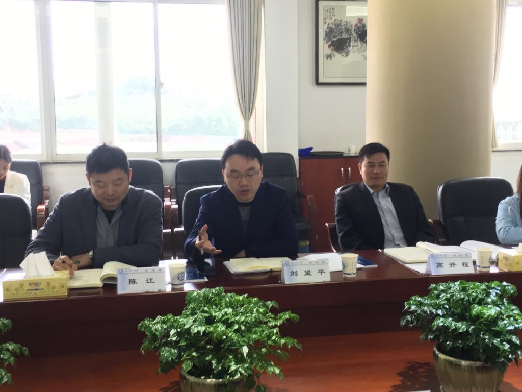 杜良忠首先向刘望平主任一行来开云官网调研表示热烈欢迎,并简要介绍了学校的基本情况。随后李岳林详细介绍了学校的专业优势、科研水平、产学研合作情况以及成果转化中心的职能,并期望能与宁乡市进行实质性的合作。徐学军、赵利平分别给出了相关建议。