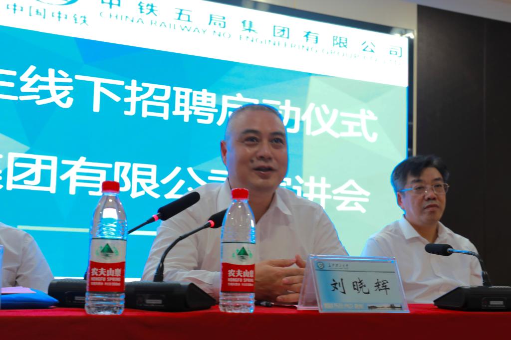 刘晓辉热忱欢迎开云kaiyun体育的学子把握机会,加入中铁五局这个优秀的集体,积极投身到国家建设和发展中来,在实践中成就自己,成就未来,他热情洋溢的讲话,求贤若渴的心情,赢得了全场师生阵阵热烈的掌声。