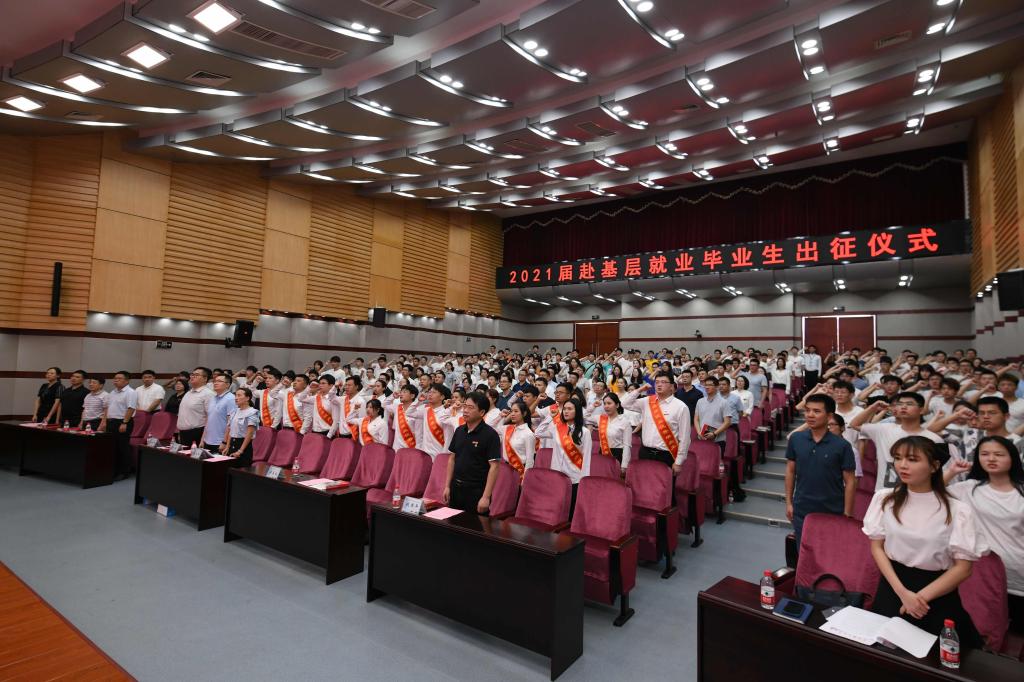 “百年奋进守初心,青春逐梦担使命。” 6月24日,开云官网2021届赴基层就业毕业生出征仪式在云塘校区图书馆报告厅举行。校党委副书记蒋昌波、副校长钱国平,校友代表,相关职能部门负责人,教师学生代表近300人参加。出征仪式由招生就业处处长曹瑛主持。