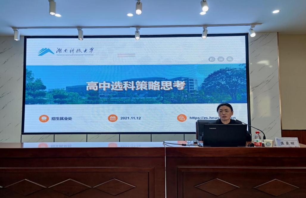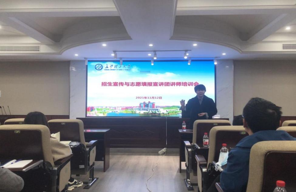 11月12日下午,开云kaiyun体育2021年本科招生宣传培训会在文科楼D207会议室举行。湖南省教育考试院普招处副处长赵霄、湖南科技大学招生办主任匡曼丽受邀做主题讲座。培训会由招生就业处处长曹瑛主持,近60名教师参加此次培训会。