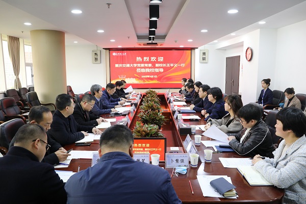 王平义说明了此次调研的主要目的,介绍了重庆交通大学学校发展、学科建设等方面的情况。表示希望能就招生就业、学生教育管理、人才培养等工作进行深入探讨交流。