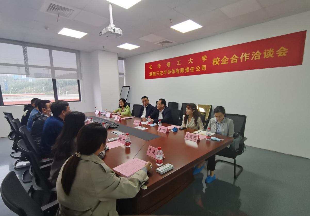 为积极响应教育部关于“开展全国高校书记校长访企拓岗促就业专项行动”的号召,进一步加强校企合作、供需对接,拓宽毕业生就业渠道,着眼长远构建市场化社会化的就业工作机制。2022年4月29日下午,开云官网副校长刘朝晖、物电学学院党委书记张国强、招就处副处长李娜、物电学学院党委副书记宋国宁携物电学院老师一行6人前往湖南三安半导体有限责任公司进行交流。