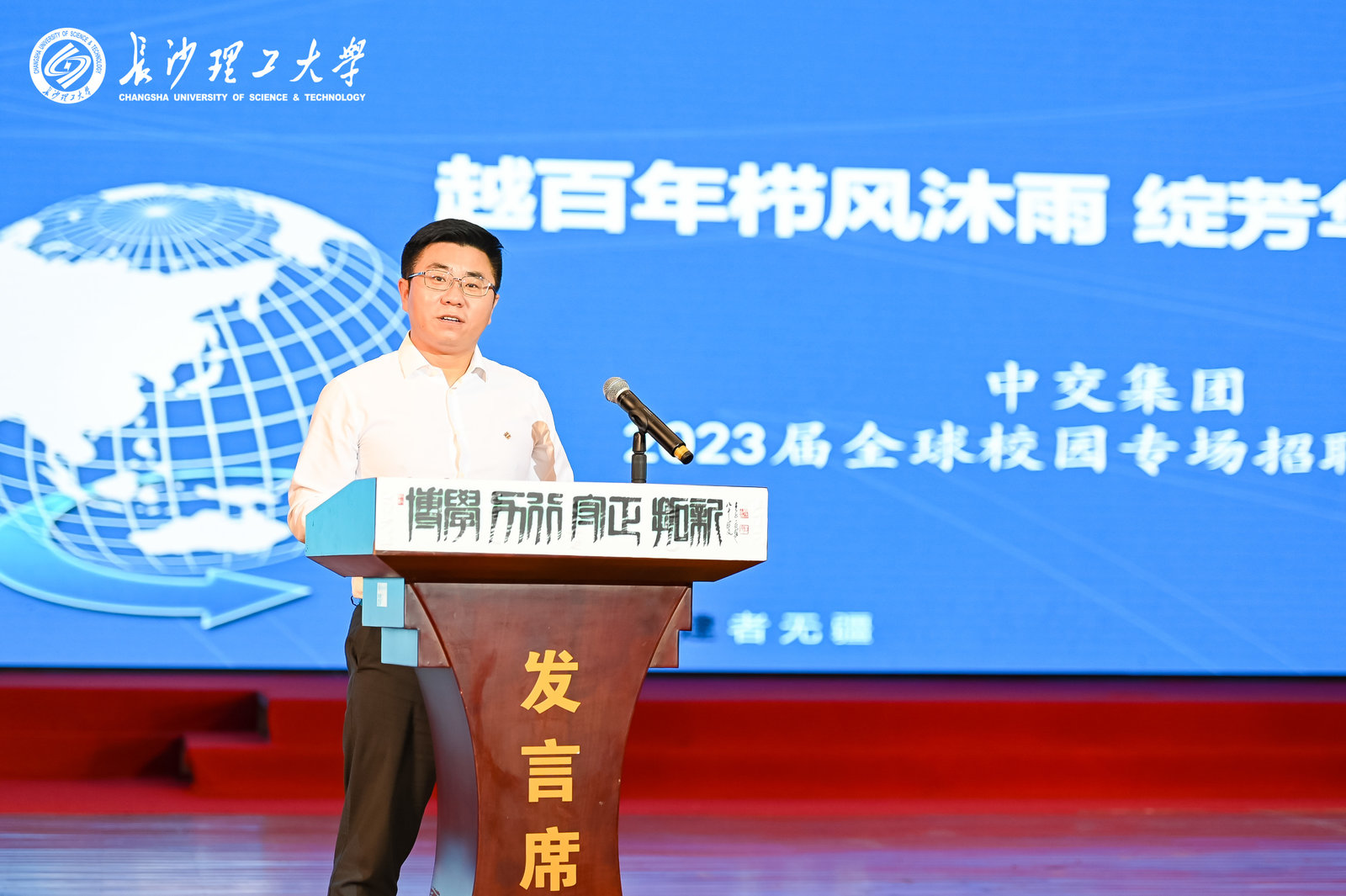 张庆华代表承办方讲话。他向到场的长理学子发出诚挚邀请,欢迎广大毕业生加入中交集团,并在这个宽广的平台上把握机遇、成就未来。希望以校园招聘会为纽带,加深长理学子对中交集团的了解,进一步巩固校企双方友好合作,共谱合作新篇章。