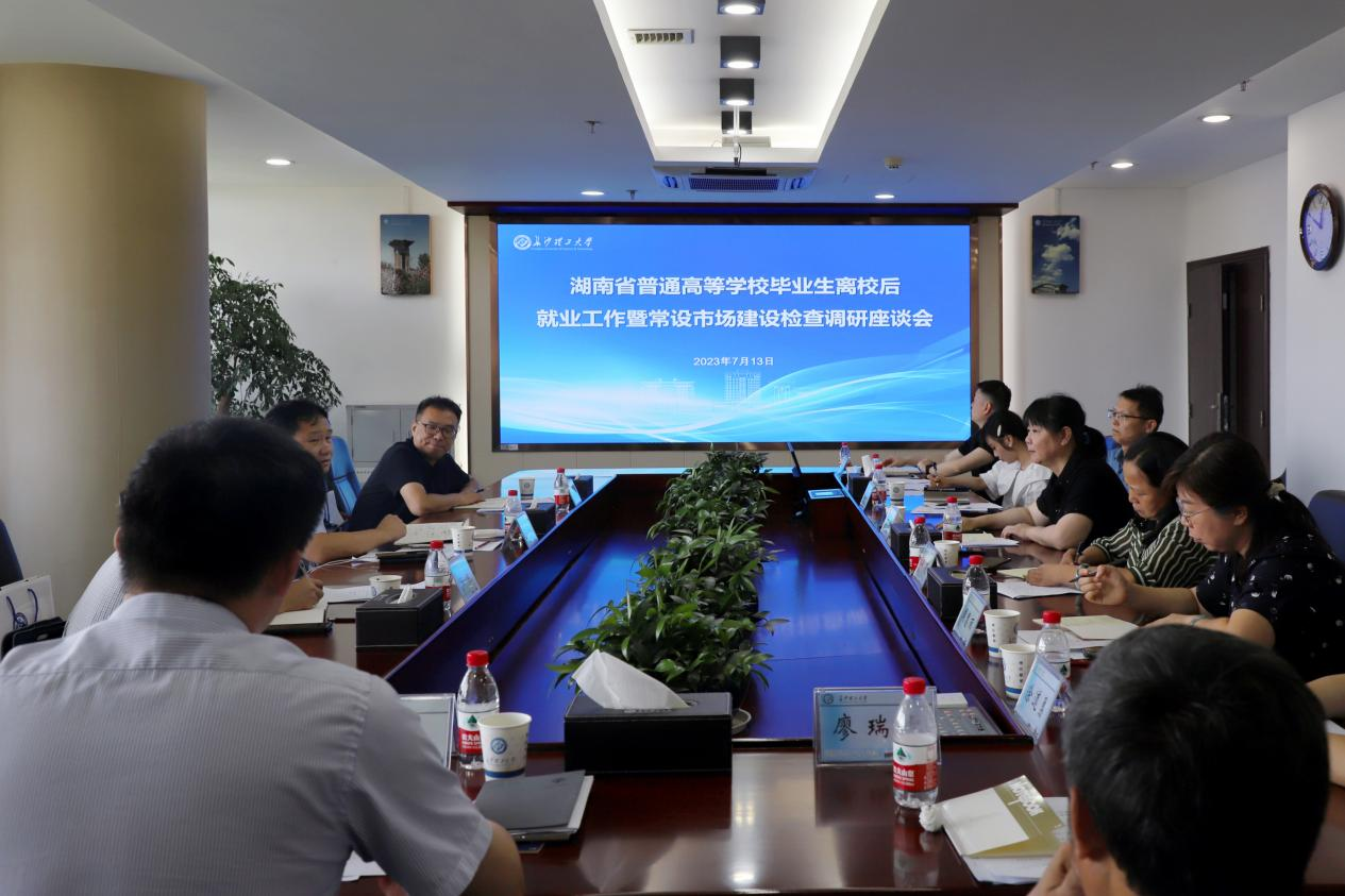 7月13日上午,湖南省教育厅学生处二级调研员李希敏一行来校检查调研毕业生离校后就业工作和就业常设市场建设情况。座谈会在一办公楼五会议室举行。省大中专学校学生信息咨询与就业指导中心有关负责同志陪同调研。开云kaiyun体育、长沙商贸旅游职业技术学院、长沙航空职业技术学院、保险职业学院招生就业处负责人及部分就业工作代表参加调研座谈会。