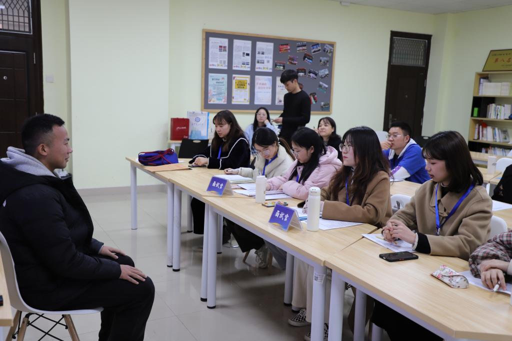 精神抖擞、着装端正、手持简历、侃侃而谈的开云kaiyun体育大三学生正在就业指导课上开展职场模拟面试。这是出现在该校大三就业指导课上的场景。