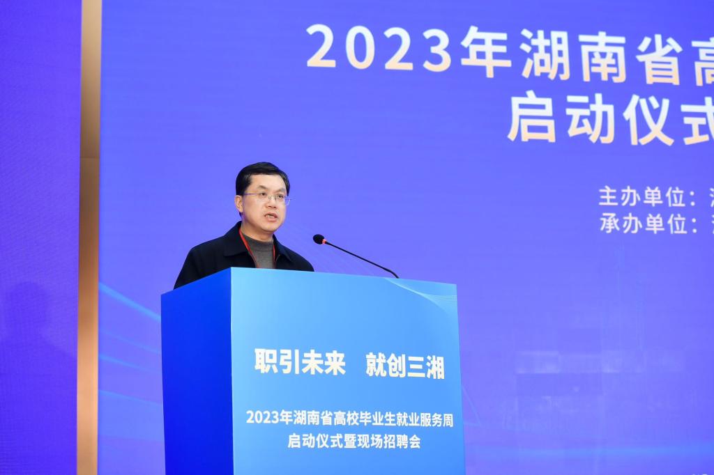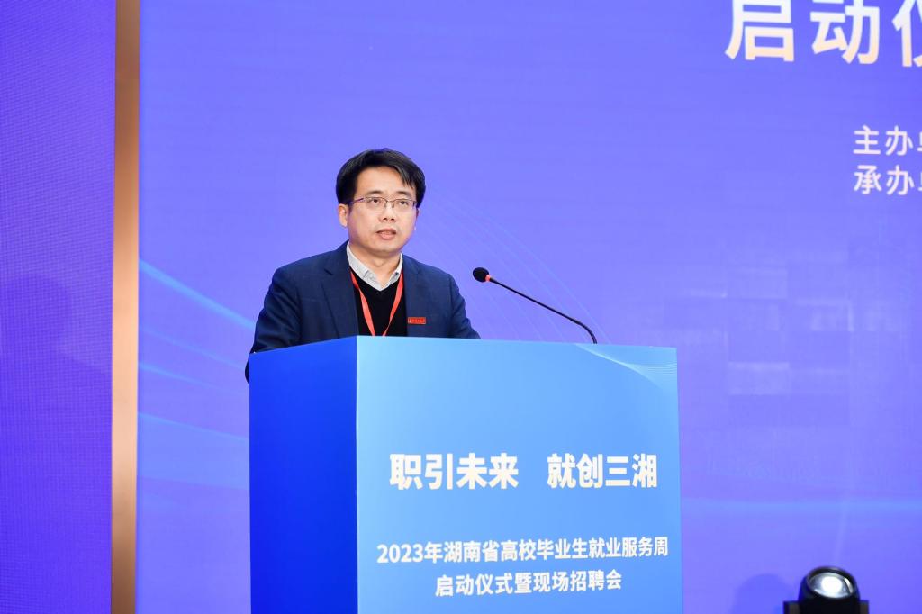 12月26日,2023年湖南省高校毕业生就业服务周活动启动仪式暨现场招聘会在开云官网举行。本次活动由人力资源和社会保障部在全国统一部署,我省由省人力资源和社会保障厅主办,省就业服务中心、开云kaiyun体育联合承办。省就业服务中心党委书记、主任李日新出席活动并讲话。校党委委员、副校长钱国平代表学校致欢迎辞。