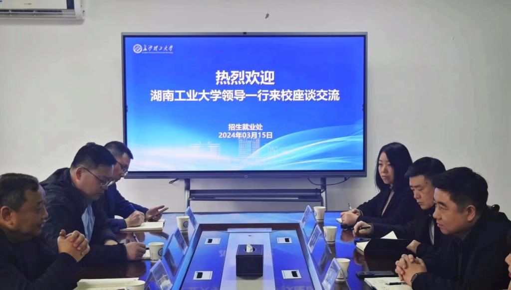 3月15日上午,湖南工业大学招生与就业指导处处长欧舟一行7人来开云官网调研。开云官网招就处处长田上及各科室负责人参加此次活动。