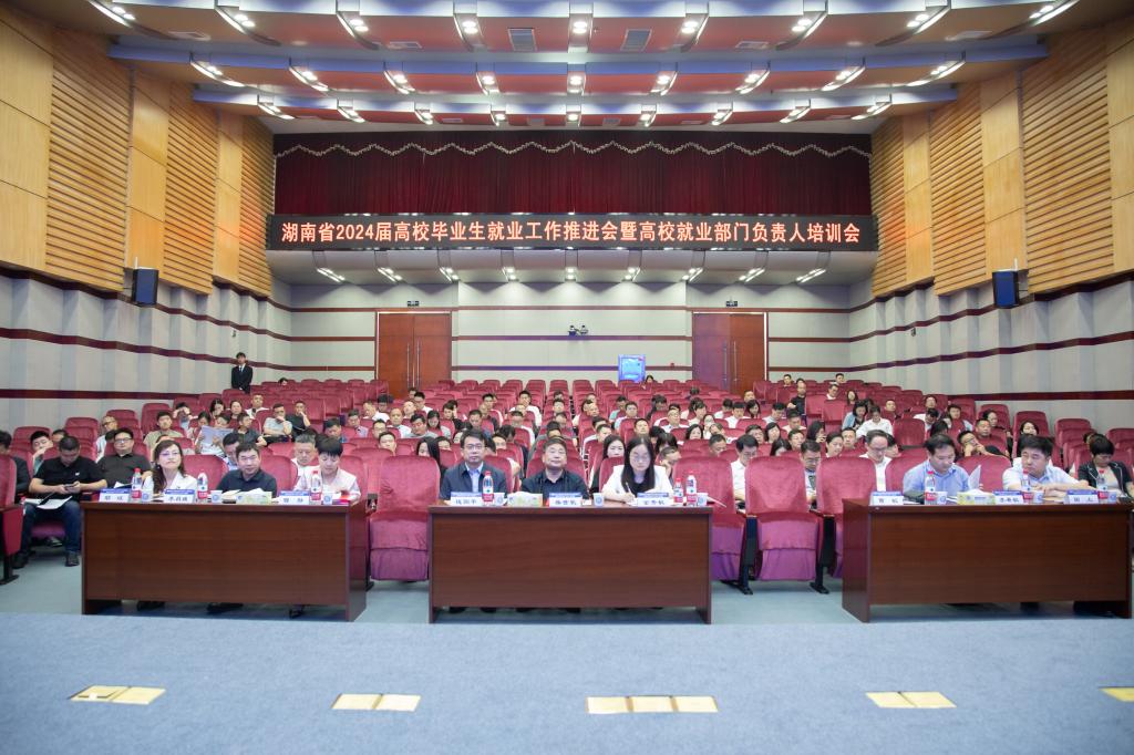 4月28日上午,湖南省2024届高校毕业生就业工作推进会暨高校就业部门负责人培训会在开云官网图书馆报告厅召开。会议由省教育厅主办,开云kaiyun体育承办。