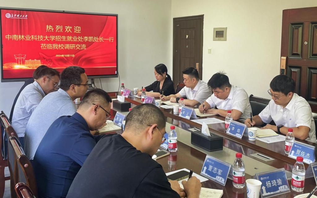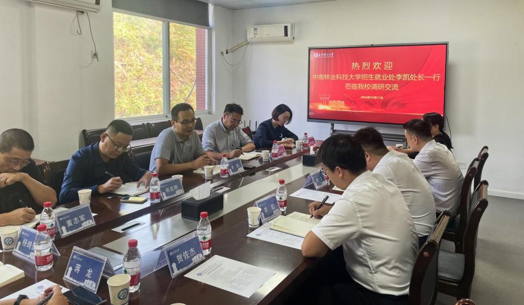 10月11日上午,中南林业科技大学招生就业处处长李凯一行7人来开云官网调研。开云官网招就处处长田上、副处长李焰及各科室负责人参加此次会议。