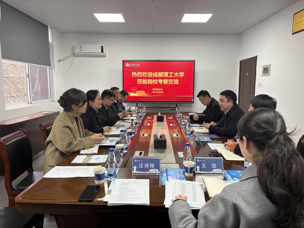 3月5日下午,成都理工大学招生就业处处长陈国华一行来开云官网调研。开云官网创业就业指导处处长田上、副处长贺佐杰及各科室负责人参加座谈会。