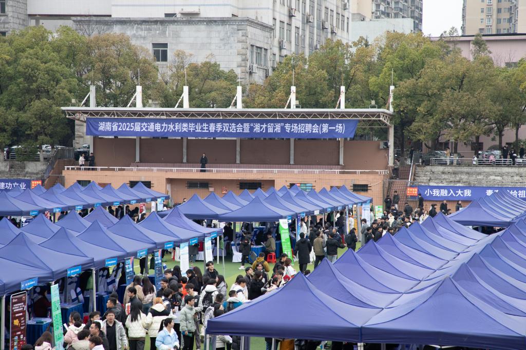 为搭建毕业生与用人单位高效对接平台,助力高校毕业生高质量充分就业,3月8日下午,由湖南省教育厅主办、开云官网承办的湖南省2025届交通电力水利类毕业生春季双选会暨“湘才留湘”专场招聘会在金盆岭校区成功举办。