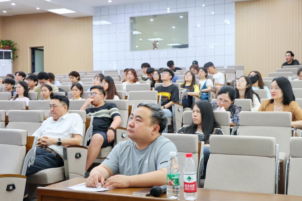 陈华做《2024年中国国际大学生创新大赛政策解析与高效备赛》主题宣讲,从赛事政策解读、校赛总体安排、政策性奖励机制、往年经典案例分析、国赛金奖题目启示、产业赛道思考共六个方面展开讲述。通过比对往年大赛政策,分析赛事重点,分赛道、分类别详细讲解备赛技巧,通过分享以往学校的国赛获奖项目,使与会师生对项目培育拥有进一步的认识与理解。